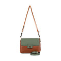Яркая сумка женская через плечо выполнена в двухцветном варианте и придется по душе истинным ценительницам акцентных аксессуаров. Сумка кросс-боди выполнена из искусственной кожи коричневого цвета и цвета хаки, мягкая и износостойкая. Подкладка изготовлена из качественного текстиля черного цвета, материал прочный и долговечный. Сумка через плечо женская имеет широкий регулируемый ремень, выполненный из двухцветного текстиля. Сумка через плечо застегивается на молнию и клапан с замком. Для максимального комфорта сумочка женская имеет внутренний карман на молнии, один внутренний карман для мобильного телефона и наружный карман сзади. Качественная фурнитура выполнена из золотистого металла, смотрится эффектно. Сумка легкая, небольших размеров, при этом в ней можно носить необходимые личные вещи. Сумка модная незаменима в повседневной городской жизни, ее можно комбинировать с гардеробом в офисном или вечернем стиле. Сумка через плечо женская подходит на каждый день и для особого случая, с ней можно отправиться на свидание или встречу с друзьями, посетить театр и выставку, взять с собой на работу или на учебу. Такая сумочка подходит к костюму, джинсам или юбке, платью или объемному свитеру. Сумка через плечо оригинального дизайна - необходимый аксессуар в повседневном гардеробе женщины.