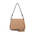 Графичная бежевая сумка из гладкой искусственной кожи. Модель с одним вместительным отделением и удобными карманами для мелочей. Широкий съемный плечевой ремень позволяет с комфортом носить сумку на плече. Застежка на магнитный замок.