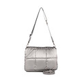 Трендовая стеганая серая сумка кросс-боди с длинным плечевым ремнем. Верх выполнен из прочного текстиля. Внутри - два вместительных отделений и карманы для мелочей. Модель с застежкой на молнию также дополнена магнитным замком. Сумка хорошо впишется в повседневные образы и подойдет для посещения офиса.