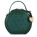 Компактная полукруглая сумка жесткой формы. Основной материал - прочная искусственная кожа зеленого цвета с витражным узором. Дно сумки оснащено специальными металлическими ножками, предотвращающих износ сумки. Внутри - два удобных отделения с текстильной подкладкой. Модель с прочной ручкой и удобной застежкой на молнию украсит любой вечерний выход.