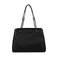 Графичная черная сумка-тоут из гладкой искусственной кожи. Трендовая отстрочка позволяет создать неповторимый микс фактур в образе. Ручки с цепочками добавляют яркий акцент. Модель с одним вместительным отделением и карманами для мелочей. Сумка отлично дополнит повседневные и вечерние образы.