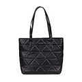 Практичная черная сумка-шопер из искусственной кожи с трендовой стеганой фактурой. Широкие ручки способствуют равномерному распределению нагрузки. Модель с одним вместительным отделением и карманами для мелочей. Сумка отлично дополнит повседневные образы.