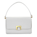 Стильная белая сумка-кроссбоди из экокожи с фактурой рептилии и золотистой фурнитурой. Компактная модель с жесткой формой и регулируемым ремнем удобна для ношения разными способами.