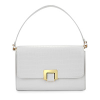 Стильная сумка-кроссбоди из экокожи с фактурой рептилии и золотистой фурнитурой. Компактная модель с жесткой формой и регулируемым ремнем удобна для ношения разными способами.