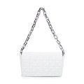 Компактная белая сумка на цепочке. Модель выполнена из стеганой искусственной кожи, подкладка - из тактильно приятного текстиля, сочетая в себе стиль и практичность. Внутри - одно вместительное отделение и карман для мелочей. Удобная застежка на молнию и магнит.