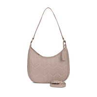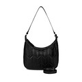 Стильная сумка-хобо с фактурной стежкой. Верх изготовлен из матовой искусственной кожи, подкладка текстильная. Внутри — одно вместительное отделение и несколько карманов для мелочей. Удобная широкая ручка позволяет с комфортом носить сумку разными способами: на плече, предплечье или в руках. Застежка на молнию.