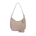 Стильная сумка-хобо с фактурной стежкой выполнена в холодном бежевом оттенке. Верх изготовлен из матовой искусственной кожи, подкладка текстильная. Внутри — одно вместительное отделение и несколько карманов для мелочей. Удобная широкая ручка позволяет с комфортом носить сумку разными способами: на плече, предплечье или в руках. Застежка на молнию.