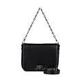 Графичная черная женская сумка-кроссбоди выполнена из гладкой искусственной кожи, подкладка текстильная. Одно вместительное отделение и удобные карманы для мелочей позволяют правильно организовать пространство сумки и с легкостью поддерживать в ней порядок. Модель с застежкой на молнию и поворотный замок. В комплекте съемный плечевой ремень и ручка-цепочка.