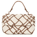 Стильная молочная сумка-кроссбоди в бежевую клетку из комбинации текстиля и экокожи с золотистой фурнитурой. Универсальная модель с магнитным клапаном и регулируемым ремнем легко трансформируется в клатч или сумку через плечо.