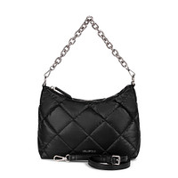 Вместительная стеганая сумка-хобо из мягкой искусственной кожи. Модель с прочной текстильной подкладкой и застежкой на молнию. В комплекте - съемный кожаный ремень и крупная цепочка в оттенке "металлик". Сумка гармонично впишется в повседневные образы.