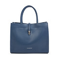 Графичная синяя кожаная сумка с ручками. Подкладка изготовлена из прочного текстиля. Внутри расположены одно большое отделение и несколько карманов для мелочей, которые позволяют удобно организовать пространство и поддерживать порядок. Модель с застежкой на молнию и магнитный замок дополнена съемным плечевым ремнем.