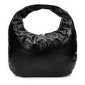 Акцентная сумка-хобо в классическом черном цвете. Дутая модель выполнена из мягкой искусственной кожи с интересной фактурой. Внутри - одно большое отделение и карман для необходимых мелочей. Аксессуар удобно застегивается на молнию и его легко носить на плече.