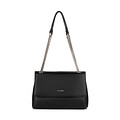 Миниатюрная черная сумка-конверт идеально подходит для повседневных и праздничных образов. Верх выполнен из матовой  искусственной кожи. Модель с двумя вместительными отделениями и удобными карманами для мелочей. Сумка с длинными ручками с цепочкой и застежкой на магнитный замок.