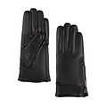 Стильные черные перчатки женские для осени выполнены в современном городском стиле. Перчатки кожаные идеально облегают ладонь, подчеркивая красоту ее линий. Перчатки на осень теплые, приятно ощущаются и не сковывают движений. Короткая молния сбоку создает дополнительный комфорт и позволяет регулировать размер перчаток в зависимости от обхвата ладони. Перчатки выполнены из мягчайшей кожи шевро, пластичной и износостойкой, она сохраняет свои свойства при перепадах температур. На перчатках не образуются заломы и трещины, но следует избегать воздействия воды на натуральную кожу. Перчатки утеплены подкладкой из натуральной шерсти бежевого цвета, которая обеспечивает оптимальный воздухообмен и влагоотведение, сохраняет руки в тепле. На лицевой стороне расположены декоративные узоры, которые придают модели выразительность. Перчатки кожаные утепленные прекрасно подходят для осенней непогоды, надежно защищают руки от холода и ветра. Перчатки кожаные смотрятся элегантно и стильно, это настоящая классика, которая будет актуальна всегда. Перчатки кожаные черные идеально дополняют гардероб в городском стиле, придают образу утонченность и особый шарм. Перчатки осенние женские подходят для прогулки и поездки, романтических встреч и посещения мероприятий на открытом воздухе. В любой ситуации женщина будет выглядеть безупречно и элегантно в черных кожаных перчатках.
