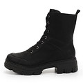 Лаконичные черные ботинки с высокой шнуровкой выполнены из мягкой искусственной кожи. Подкладка изготовлена из искусственной шерсти, стелька войлочная. Массивная подошва из полиуретана отвечает за оптимальную поддержку и отличное сцепление с покрытием. Модель также дополнена практичной застежкой на молнию. Ботинки хорошо впишутся в образы с платьями, юбками в длине миди, широкими укороченными брюками и джинсами.