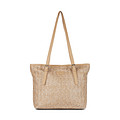 Сумка женская на плечо большая летняя в стиле шоппер закрывается на молнию. Плетеная повседневная или пляжная сумка с ручками выполнена в форме перевернутой трапеции. Модная женская или подростковая модель на молнии пригодится как дорожная сумка для вещей и для телефона. Легкое изделие может быть удобно как сумка для мамы и малыша на прогулку. Пригодится аксессуар для путешествий и для поездок. Изделие с карманами понравится подросткам девочкам как молодежная сумка для прогулок. Мягкая модель для отдыха пригодится как городская сумка на плечо. Большая сумка шоппер удобна для бабушек и мам. Сумка с двумя ручками дополнена качественной фурнитурой серебристого цвета. Изготовлена весенняя или летняя сумка из переплетенных в узор нитей полиуретана бежевого цвета, материала, который по внешнему виду и свойствам напоминает натуральную кожу, но с большей прочностью и износостойкостью, 90 процентов. Детали в тон выполнены из качественной искусственной кожи, 10 процентов. Подкладка изготовлена из прочного текстиля бежевого цвета. Карманы внутренний на молнии и для мобильного телефона. Габариты сумки Д 42 х Ш 11 х В 31 см. Высота сумки с ручками 69 см. Вес сумки 308 гр.