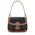 Актуальная сумка-сэддл с жестким каркасом. Модель комбинирует черную и коричневую искусственную кожу с зернистой и гладкой фактурой, что подчеркивает ее форму. Внутри - одно отделение и удобные карманы для мелочей. В комплекте дополнительно идет регулируемый плечевой ремень.