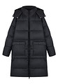 Утепленное стеганое пальто с капюшоном и накладными карманами. Стильный силуэт. Непродуваемая и водоотталкивающая ткань защитит в самую холодную зимнюю погоду.