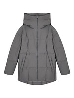 Утепленная стеганая куртка с капюшоном. Наполнитель из пуха обеспечивает теплом и уютом. Стильный свободный силуэт подчеркнет ваш изысканный стиль и согреет в холодную погоду.