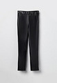 Брюки женские выполнены из искусственной кожи, имеют зауженный крой и смотрятся очень эффектно. В состав материала входят полиуретан и полиэстер, благодаря чему брюки отлично сидят по фигуре, подчеркивают ее достоинства и делают более привлекательными. Материал плотный, обладает водоотталкивающими свойствами, за ним легко ухаживать, он не мнется и надолго сохраняет свои свойства. Черные брюки застегиваются на молнию сбоку, декорированы небольшими разрезами по бокам, пояс в виде широкой резинки отлично тянется и не пережимает фигуру. Стильные брюки эффектно смотрятся с удлиненной рубашкой свободного кроя или футболкой, свитером или свитшотом, с кроссовками или кедами контрастного цвета. Особенно ярко смотрятся кожаные черные брюки с туфлями на высоком каблуке. Такой дерзкий образ отлично подходит для свидания и вечеринки. Штаны экокожа модно надеть на работу и в офис, на прогулку и в поездку, в путешествие, на отдых и в отпуск. Брюки из экокожи идеальны для холодной погоды, сохраняют тепло и не продуваются ветром. В зависимости от подобранного верха, в кожаных брюках можно отправиться на встречу с друзьями, в кино или театр, культурное мероприятие. Эффектные брюки зауженные подходят девушке или девочке подростку, подчеркивают индивидуальность и тонкое чувство стиля.