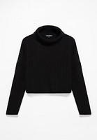 Короткий женский свитер с высоким горлом незаменим в осенний и зимний период для создания модных образов. Объемный свитер свободного силуэта смотрится эффектно и стильно. Черный, зеленый или цвета фуксия свитер женский вязаный можно комбинировать с вещами любого стиля. Теплый свитер в рубчик подходит на каждый день или для отдыха. Трикотажное полотно состоит из акрила, благодаря чему кофта с длинным рукавом прекрасно садится по фигуре, сохраняет форму после стирки и не скатывается. Высокий воротник защищает горло от ветра и холода, избавляет от необходимости носить шарф. Воротник можно укладывать разными способами, его форма подчеркивает красоту шеи и плеч. Свитер с воротником стойкой имеет свободный крой, его можно носить девушкам и женщинам с любым типом фигуры. Приспущенный рукав, широкий крой и свободная резинка на манжетах рукавов делают модель максимально комфортной. Укороченный свитер широкий не стесняет движений, он отлично подходит для дома и дачи, каникул и отпуска. Оверсайз свитер женский подходит девочке как кофта для подростка. Свитер женский с горлом согревает в холодный сезон и подчеркивает женственность.