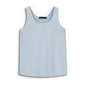 Лаконичная голубая блузка без рукавов. Овальный вырез деликатно акцентирует зону декольте. Блузка отлично подойдет в качестве основы многослойных образов с жакетами и кардиганами.