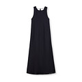 Платье женское летнее длинное А силуэта может пригодиться как базовое повседневное и праздничное платье. Классическое платье макси выполнено с подкладкой, оно струящееся и легкое, идеально для вечернего образа. Модель легко заменяет платье хлопковое и льняное. Свободное длинное платье без рукавов выполнено со слегка расклешенной юбкой. Наряд для женщин подходит для девочек подростков. Стильная модель на лето может пригодиться как офисное платье на работу и как домашнее платье. Женственное нежное изделие на широких бретелях подходит в школу на выпускной и на свадьбу для подружек невесты. Платье трапеция легко комбинируется с другими вещами. Элегантная модель может пригодиться на праздник для беременных и для фотосессии. Расклешенное от линии груди изделие комфортно в течение всего дня. Наряд можно взять на море для прогулок по променаду и на вечер в ресторан. Воздушное темное синее платье женское или молодежное сшито из ткани, состоящей на 55 процентов из рами и на 45 процентов из тенселя. Экологически чистая ткань рами производится из волокон крапивы. Это красивый и прочный материал с серебристым отливом. Тенсель представляет собой разновидность вискозы, его получают путем переработки натуральной древесины эвкалипта. Это гипоаллергенный материал, дышащий, мягкий и нежный на ощупь. Подкладка выполнена из 100 процентного хлопка. Длина изделия спереди в 44 размере 129 см, далее прибавляется 1 см к каждому размеру. Вес изделия около 242 гр.