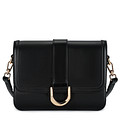 Стильная черная сумка через плечо с золотой фурнитурой. Основной материал - гладкая искусственная кожа нового поколения, которая отличается износостойкостью и приятной тактильностью. Внутри - одно отделение и удобные карманы для мелочей. Модель плотно застегивается на магнит. В комплекте идет длинный регулируемый ремень.