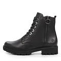 Легкие черные ботинки с акцентной шнуровкой. Верх выполнен из гладкой натуральной кожи. Подкладка и стелька из деликатного велюра обеспечивают комфорт стоп в процессе носки. Утолщенная резиновая подошва отличается прочностью и надежным сцеплением с любой, даже скользкой, поверхностью. Модель с удобной застежкой на молнию.