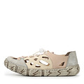 Акцентные бежевые летние полуботинки с крупной перфорацией. Верх выполнен из прочной искусственной кожи. Эластичная шнуровка с кулиской хорошо фиксирует обувь на ноге. Гибкая подошва из полиуретана обеспечивает комфорт стоп при движении, а также отличается прочностью.