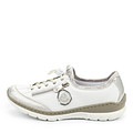 Комфортные женские кроссовки  – это универсальная всесезонная обувь, которая отлично дополнит спортивный или расслабленный, неформальный образ. Модель выглядит элегантно благодаря интересному сочетанию цветов: верх пары выдержан в белом цвете с серыми и серебристыми вставками, подошва – светло-серая с белым. На боковой части обуви – небольшой декор в тон, а также декоративная молния. Пара на шнуровке.