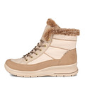Практичные бежевые ботинки выполнены в стиле sport casual. Верх изготовлен из искусственной кожи и прочного текстиля.  Войлочная стелька хорошо защищает стопы от холода. Высокая подошва из полиуретана обеспечивает устойчивость на любых покрытиях. Модель со шнуровкой дополнена удобной застежкой на молнию. Пара хорошо подойдет для прогулок, загородного отдыха и outdoor-активностей.