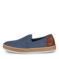 Удобные синие слипоны из мягкого текстиля с перфорацией. За комфорт стоп отвечают кожаная подкладка и стелька.  Гибкая подошва из полиуретана поддерживает стопы в оптимальном положении. Эластичные вставки хорошо фиксируют пару на ноге.