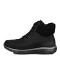 Уютные черные ботинки на холодный сезон. Верх сочетает современную искусственную кожу и плотный текстиль. Подкладка утеплена искусственной шерстью. Высокая резиновая подошва отличается прочностью и хорошим сцеплением с поверхностью.