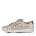Кожаные золотые кеды с оригинальным дизайном. За комфорт стоп отвечают мягкая текстильная подкладка и кожаная стелька. Гибкая резиновая подошва формирует оптимальный уровень поддержки. Шнуровка надежно фиксирует пару на ноге.