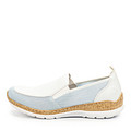 Комфортные женские полуботинки в нежной бело-голубой гамме. Перфорированный верх комбинирует дышащий текстиль и прочную искусственную кожу. Подкладка и стелька из дышащих материалов обеспечивает комфорт стоп в течение всего дня. Объемная полиуретановая подошва отлично амортизирует нагрузку на ноги. Модель фиксируется эластичными резинками по бокам.