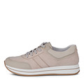 Бежевые кроссовки идеально дополнят повседневный гардероб. Модель со спортивным подкладом и кожаной стелькой, гарантирующими отличный воздухообмен. Гибкая подошва из полиуретана отличается легкостью и обеспечивает комфорт при движении. Пара снабжена шнуровкой. УТолщенный ворот поддерживает щиколотки.