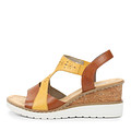 Яркие летние босоножки оригинальным сочетанием желтого и коричневого оттенков. Верх выполнен из искусственной и натуральной кожи с деликатной декоративной перфорацией. Двухкомпонентная подошва из полиуретана с имитацией пробковой фактуры обеспечивает отличную амортизацию нагрузки на ноги.