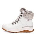 Удобные белые ботинки с высокой шнуровкой и меховой отделкой. Подкладка и стелька выполнены из мягкой натуральной шерсти с мембраной RiekerТех, которая поддерживает постоянную температуру внутри обуви и предотвращает скапливание лишней влаги. Скульптурная резиновая подошва отличается прочностью и поддерживает стопы в оптимальном положении при движении. Модель со шнуровкой и удобной молнией, упрощающей процесс фиксации обуви.