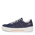 Минималистичные синие кеды из текстиля. За комфорт стоп отвечают мягкие текстильные подкладка и стелька. Высокая резиновая подошва обеспечивает оптимальный уровень поддержки. Шнуровка надежно фиксирует пару на ноге.