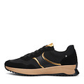Актуальные черные кроссовки с золотыми акцентами. Верх из плотного текстиля дополнительно укреплен в районе союзки натуральной кожей для оптимальной защиты стоп от влаги и ветра. Подкладка и стелька обеспечивают комфортный воздухообмен в процессе носки. Высокая резиновая подошва с выраженными протекторами отличается прочностью и хорошим сцеплением с любой поверхностью.