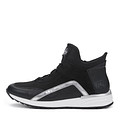 Необычные по виду женские кроссовки, рассчитанные на активную носку зимой. Сделаны из комбинации текстиля и искусственной кожи, внутри утеплены натуральной шерстью. Они полностью закрывают лодыжку. Верх черный, сбоку есть серебристая вставка – интересный акцент модели. Полиуретановая подошва белого цвета. Пару рекомендуем сочетать со спортивными брюками, утепленными джинсами.