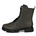 Стильные женские ботинки темно-зеленого цвета из натуральной кожи. Подкладка выполнена из искусственного меха, стелька войлочная. Высокая рифленая подошва из резины обеспечивает устойчивость на любых покрытиях и защищает стопы от негативного воздействия внешней среды. Шнуровка надежно фиксирует пару на ноге, также модель дополнена застежкой на молнию.