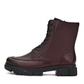 Стильные ботинки с высокой шнуровкой в трендовом оттенке бордо. Верх выполнен из зернистой натуральной кожи. Подкладка и стелька из дышащего текстиля обеспечивают комфорт стоп в процессе носки. Утолщенная резиновая подошва с выраженным протектором отличается прочностью и хорошим сцеплением с любой поверхностью. Модель с удобной застежкой на молнию.