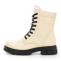 Стильные бежевые ботинки с верхом из натуральной кожи. Подкладка выполнена из мягкого велюра с мембранной, стелька изготовлена из войлока. Ботинки дополнены высокой шнуровкой и удобной застежкой на молнию. Утолщенная подошва из резины гарантирует комфорт при движении. Контрастная отделка добавляет паре характера.