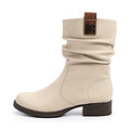 Актуальные бежевые полусапоги с трендовой складкой на голенище. Верх выполнен из искусственной кожи нового поколения и декорирован стильным ремешком. Подкладка из современного аналога шерсти и велюровые стельки обеспечивают комфорт стоп. Утолщенная резиновая подошва отличается прочностью и хорошим сцеплением с поверхностью.